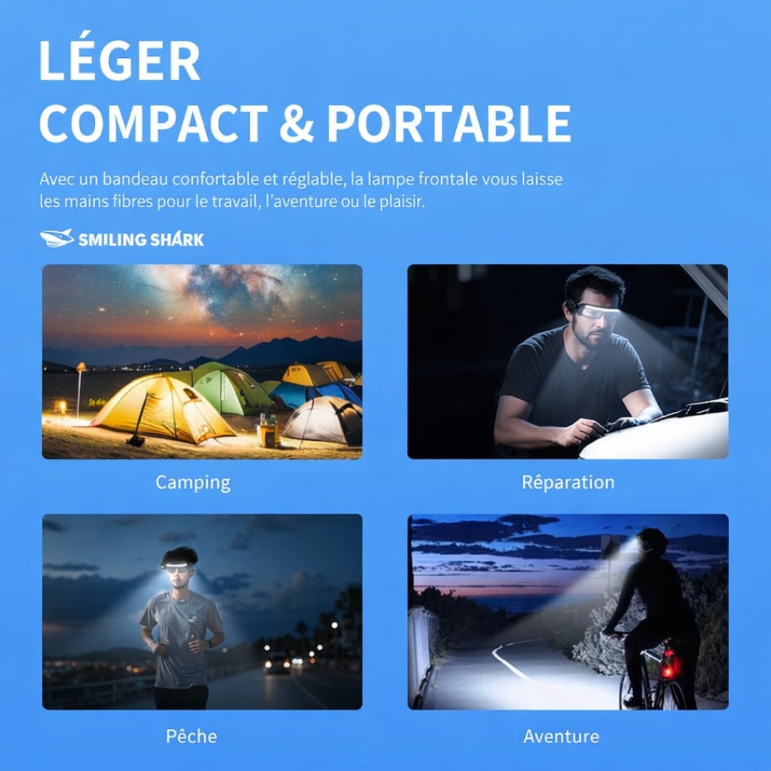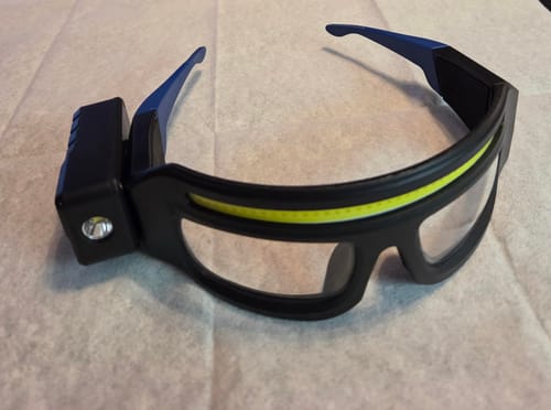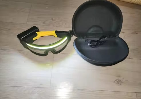 Allumer avec le bouton ON la paire de lunettes. Vous pouvez l'utiliser partout pour éclairer des zones sans aucune difficulté.